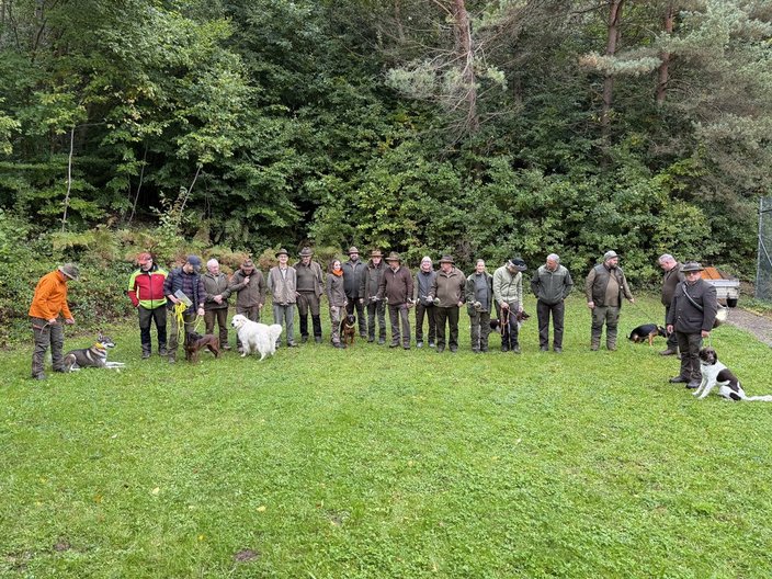 Am 27.09.2025 und am 04.10.2025 wurden Brauchbarkeitsprüfungen nach der neuen Prüfungsordnung vom April 2024 gem. Modul 1.1 und Modul 1.4 im Revier Neunkirchen durchgeführt, wozu Hundeobmann R. Schirk acht Hundeführer mit ihren Hunden begrüßen konnte.